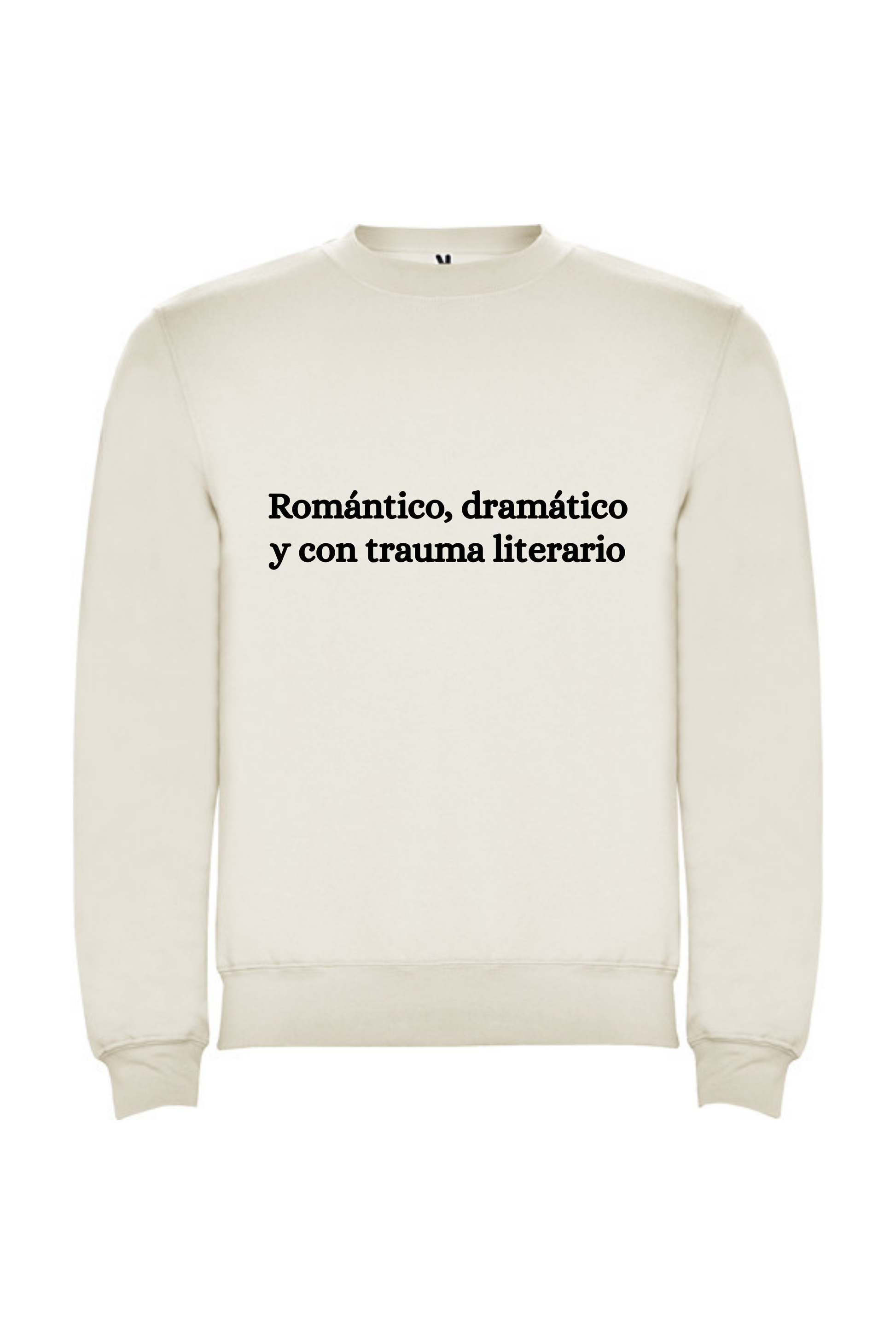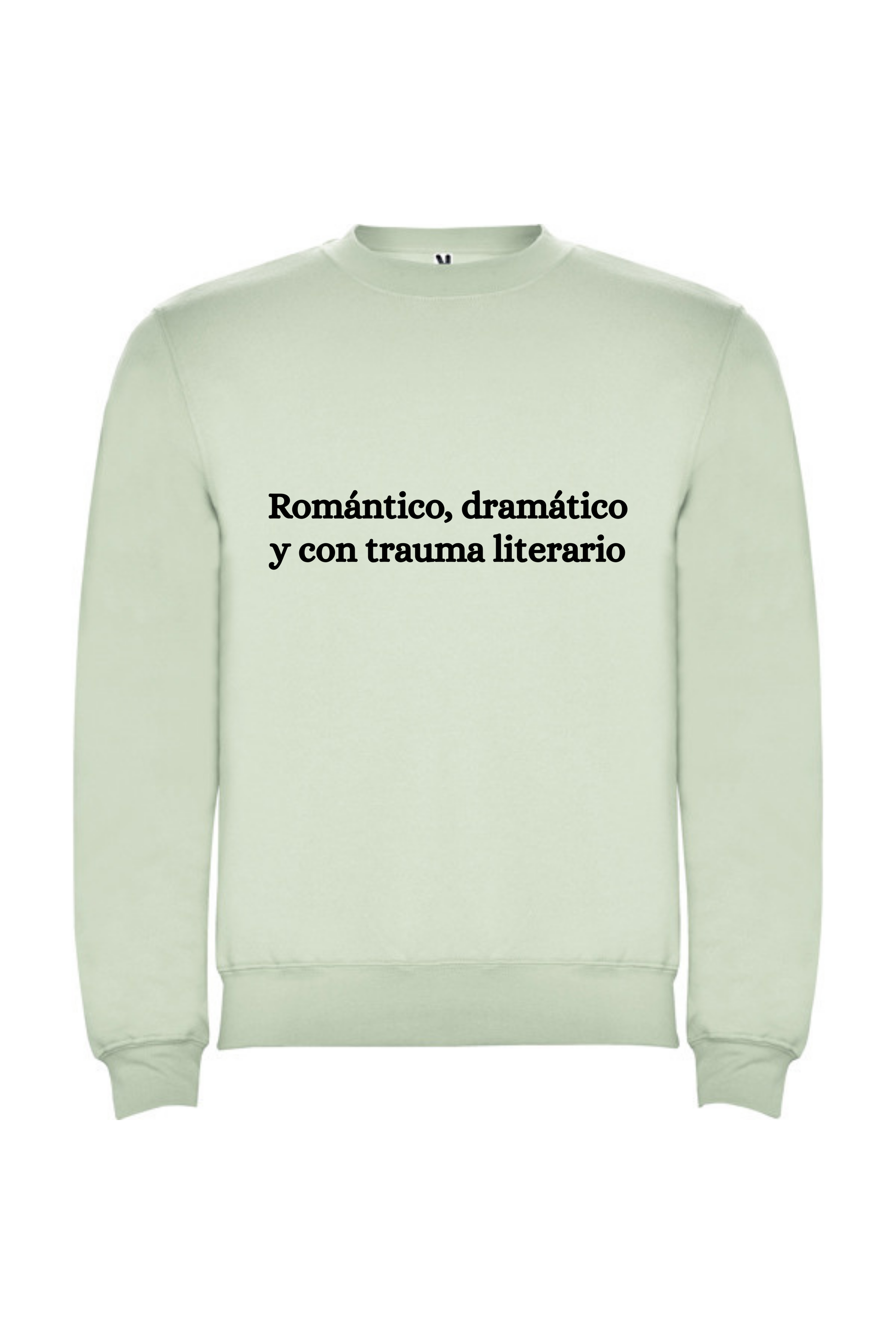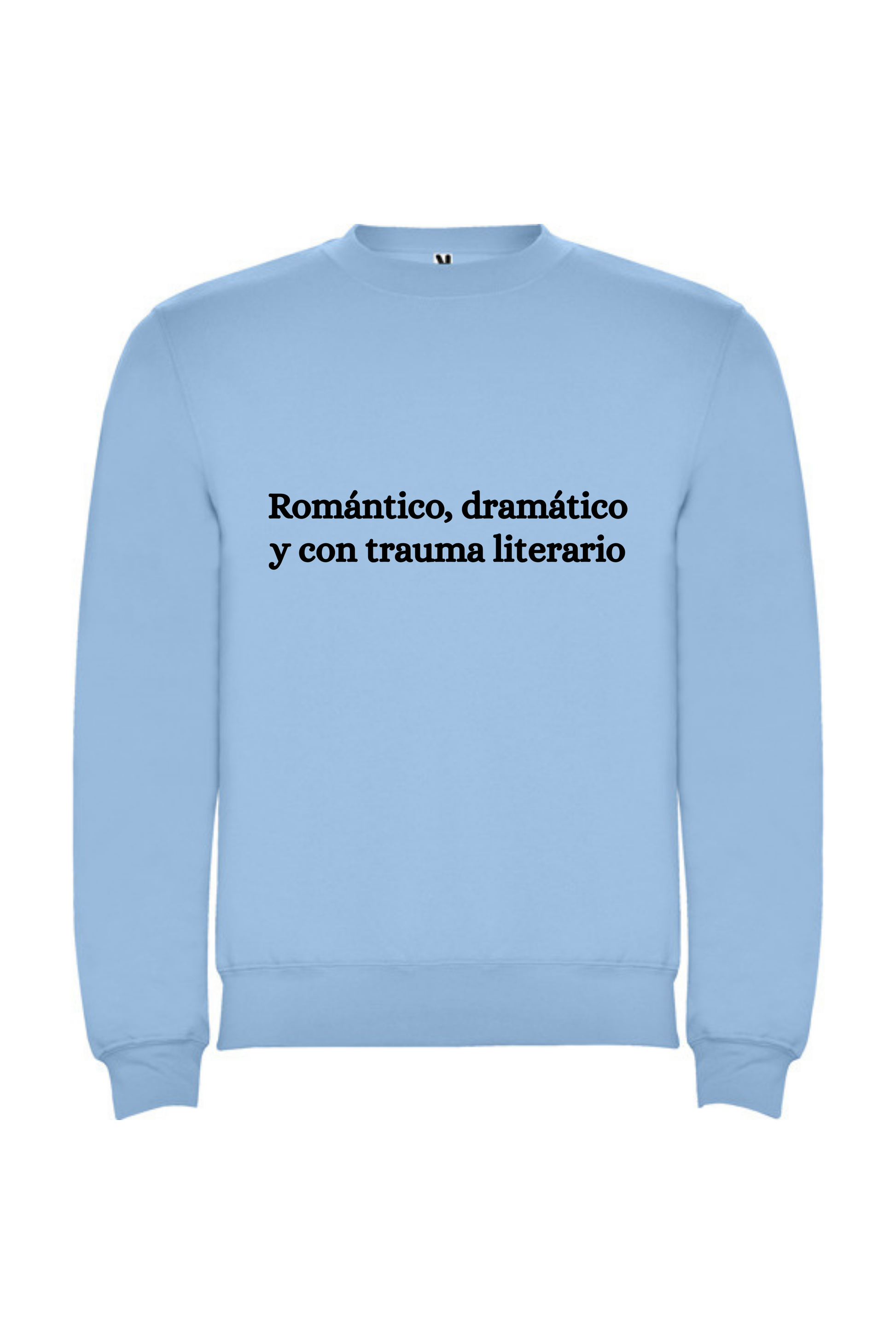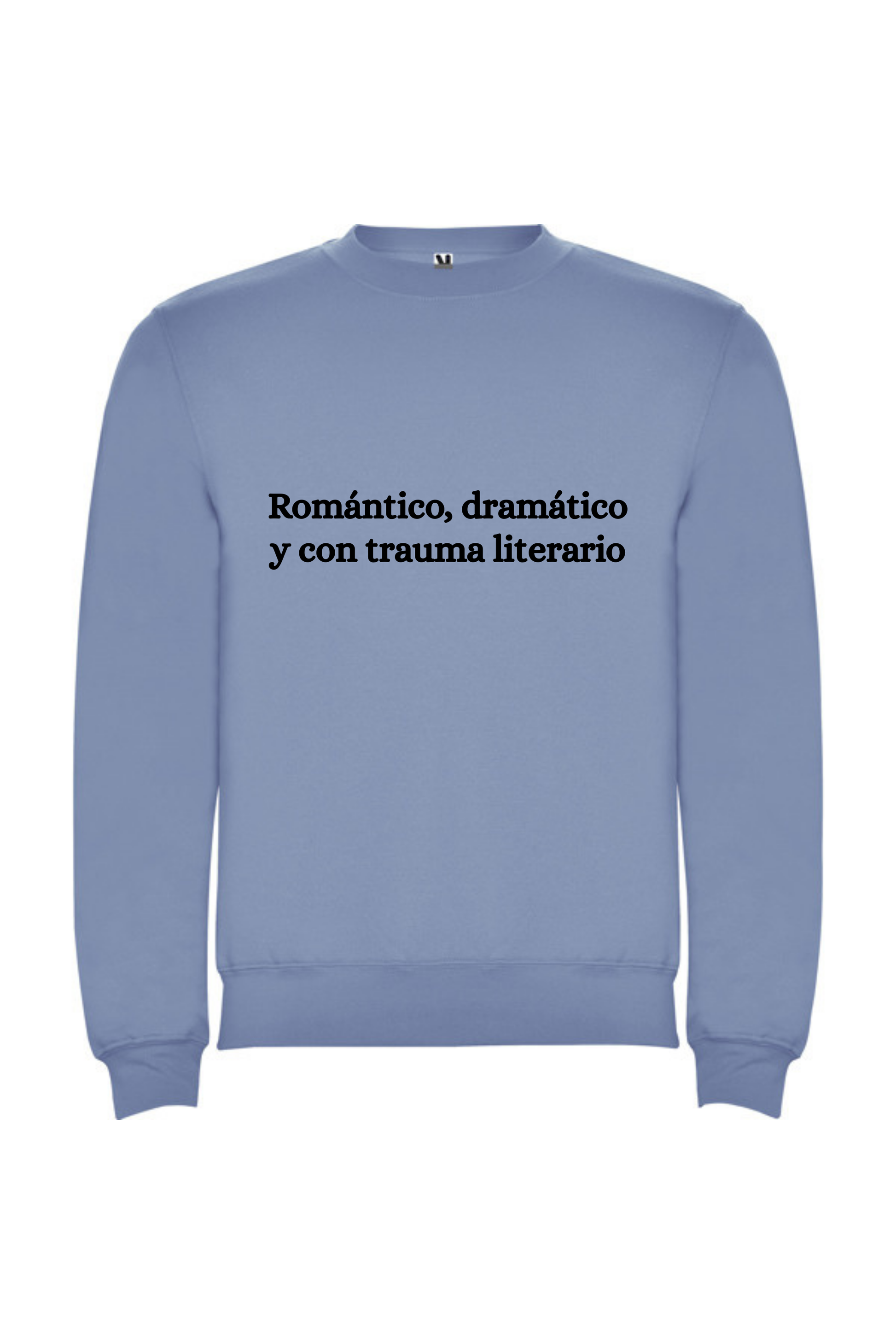 - Inscripción frontal: “Romántico, dramático y con trauma literario”